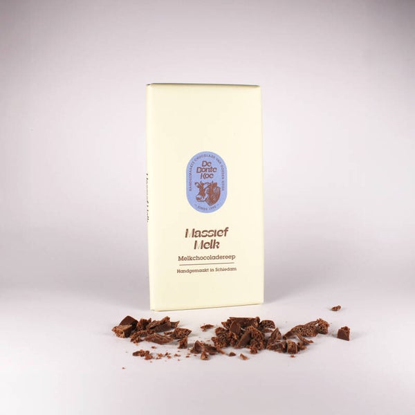 Elke reep wordt met de hand gemaakt in hun atelier in Schiedam — zonder overbodige toevoegingen, met echte cacao en een volle, romige smaak.